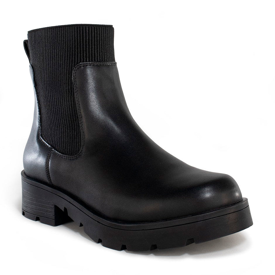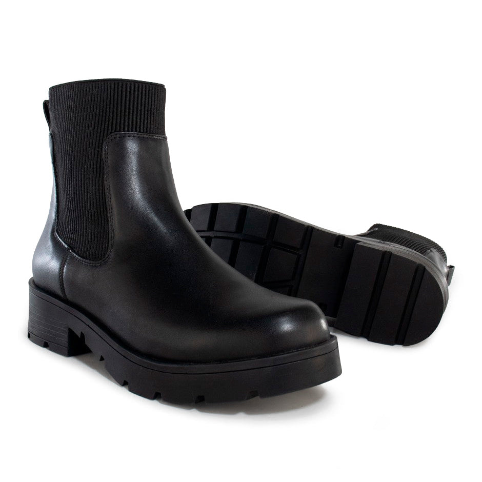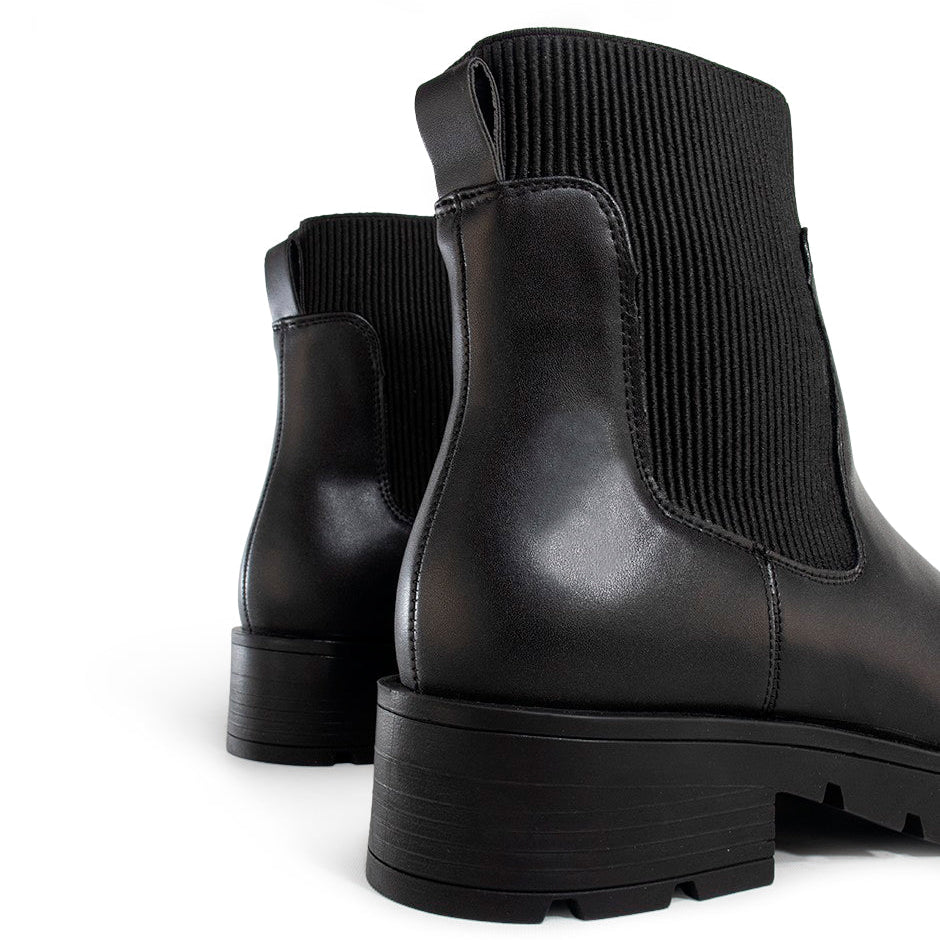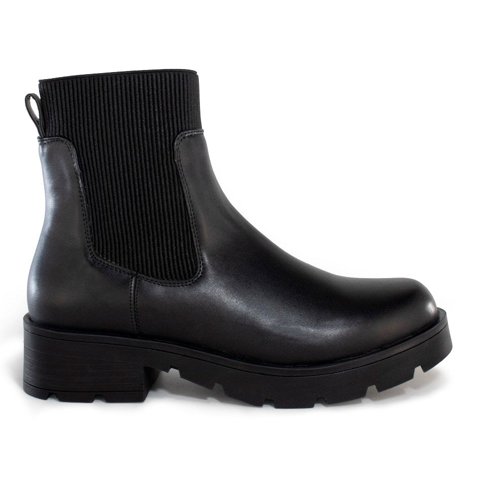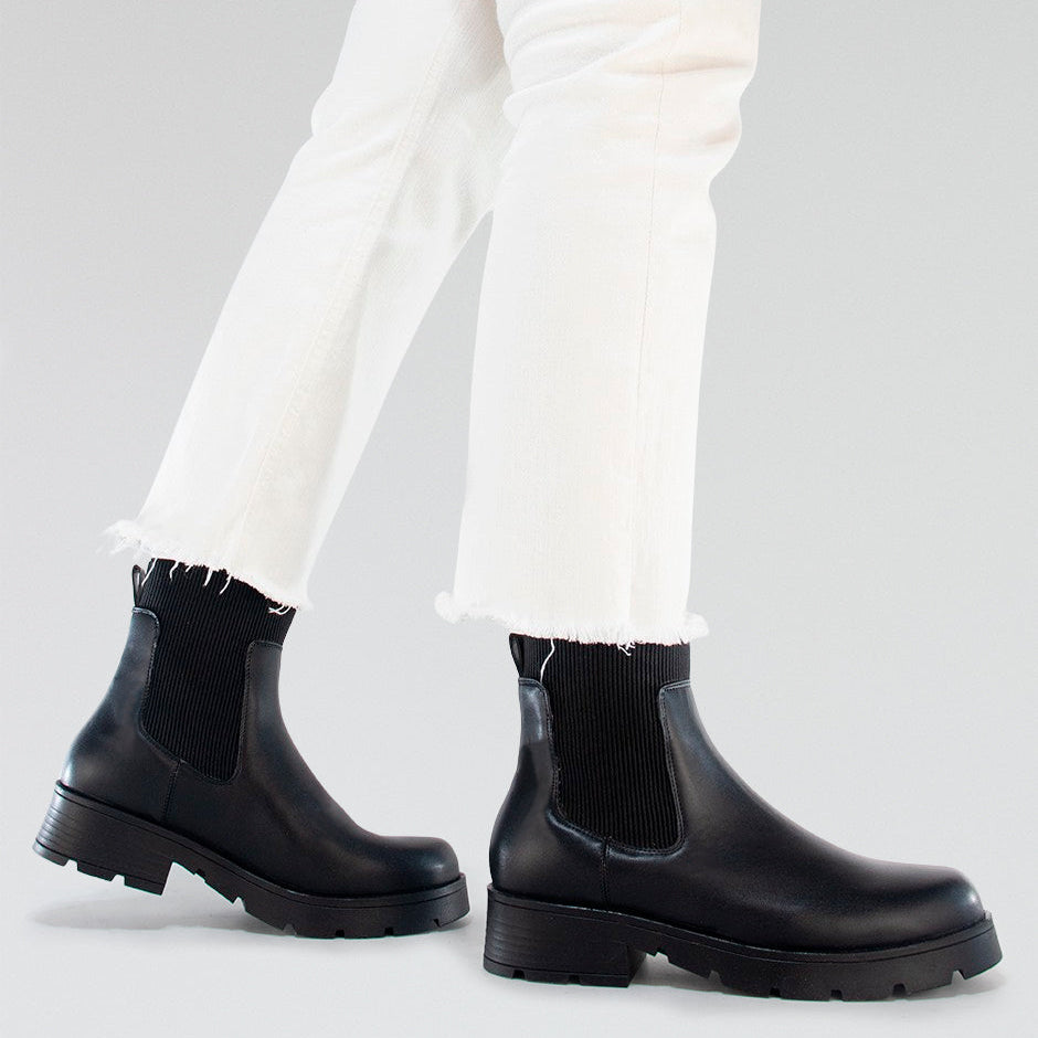 Botines con plataforma para mujer, tipo Chelsea elaborados en napa sintética grabada, de la mejor calidad y durabilidad, disponibles en color negro, con aplicación de resorte en ambos lados.