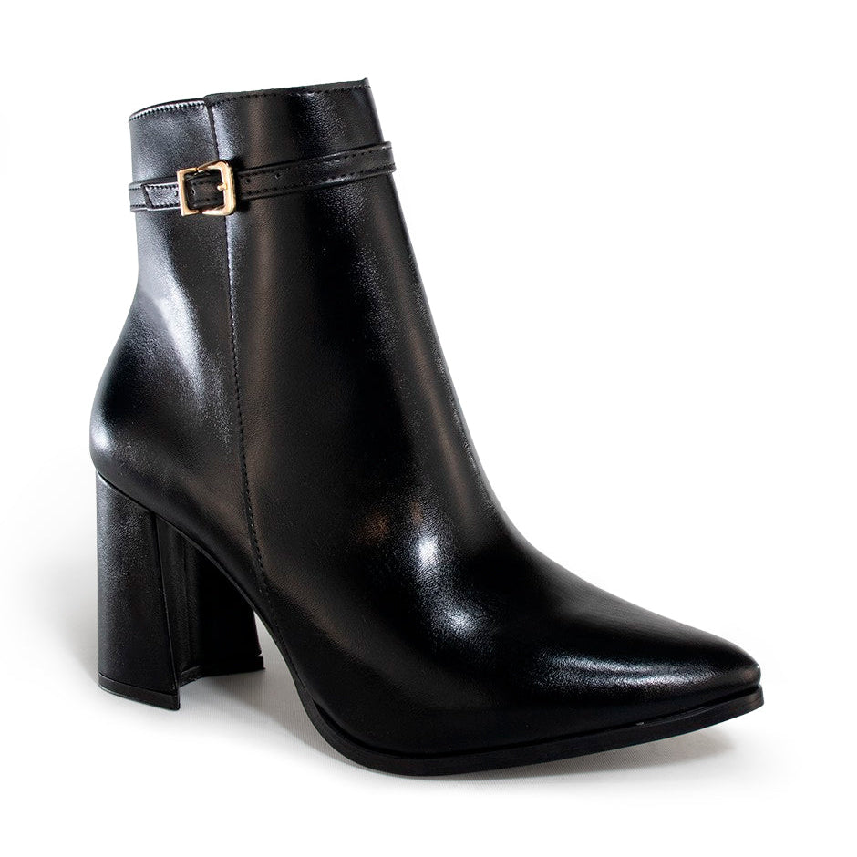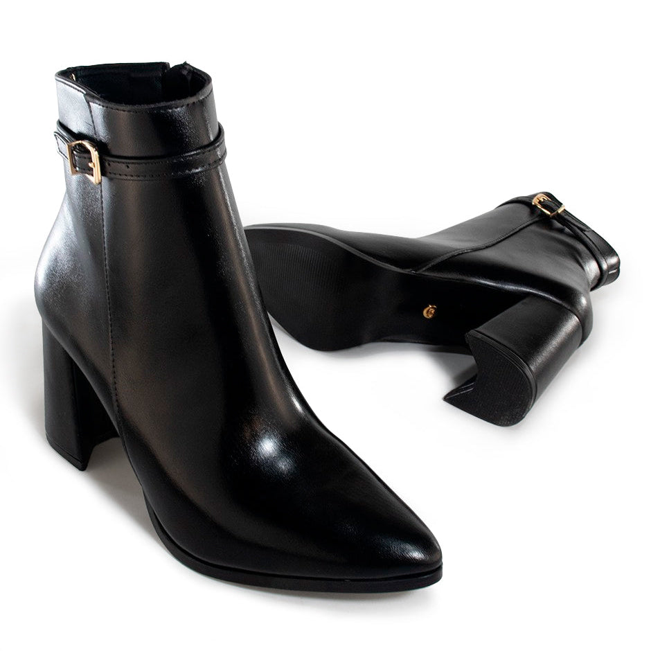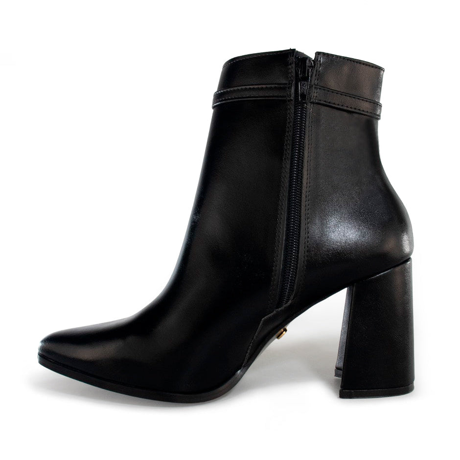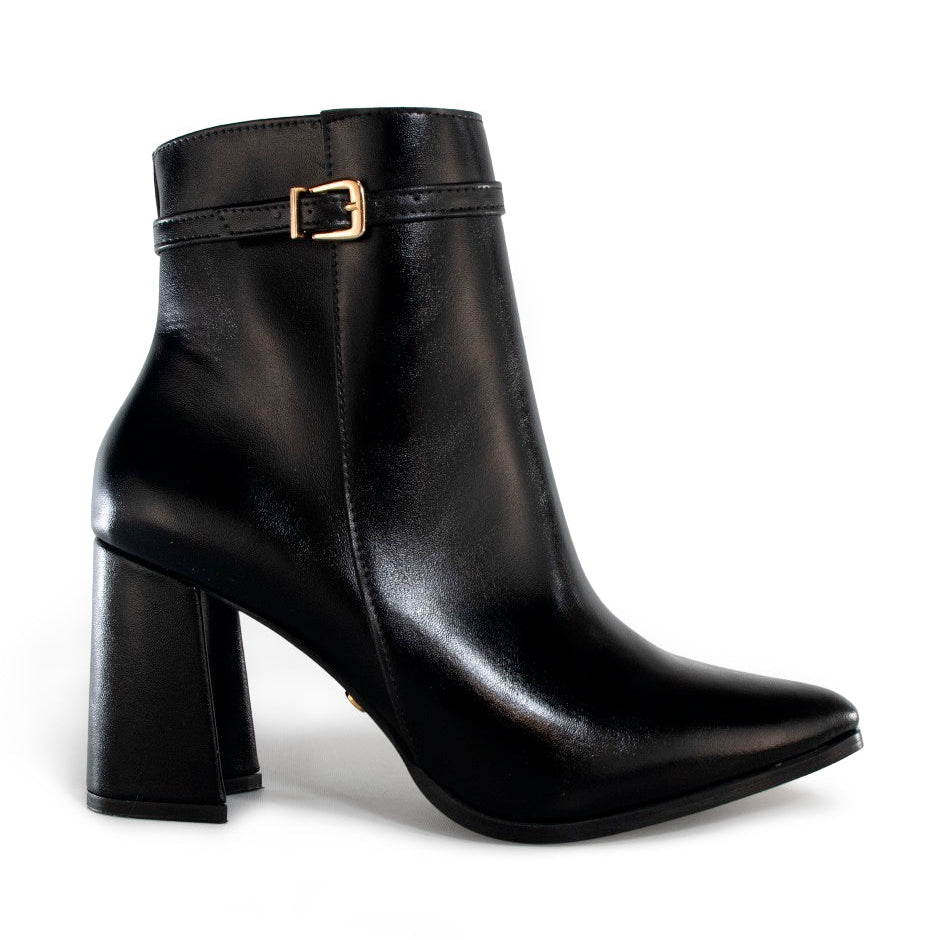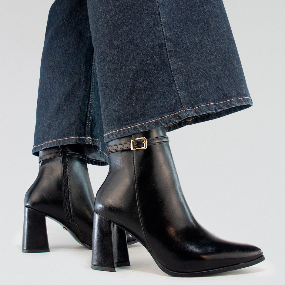 Botines con aplicación en laterales, de tira con hebilla decorativa, con tacón ancho para mujer, elaborados en material sintético de alta calidad y durabilidad. Disponibles en color castaña y negro.