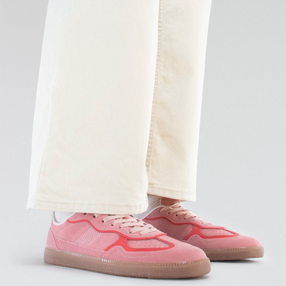 Tenis casuales elaborados en combinación de materiales de alta calidad y durabilidad: napa sintética y textil tipo gamuza. Disponible en combinación de color de materiales neutros y ROSAS. Forro acojinado, dándole más comodidad a un estilo moderno de sneakers.